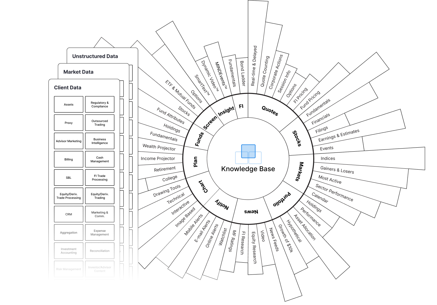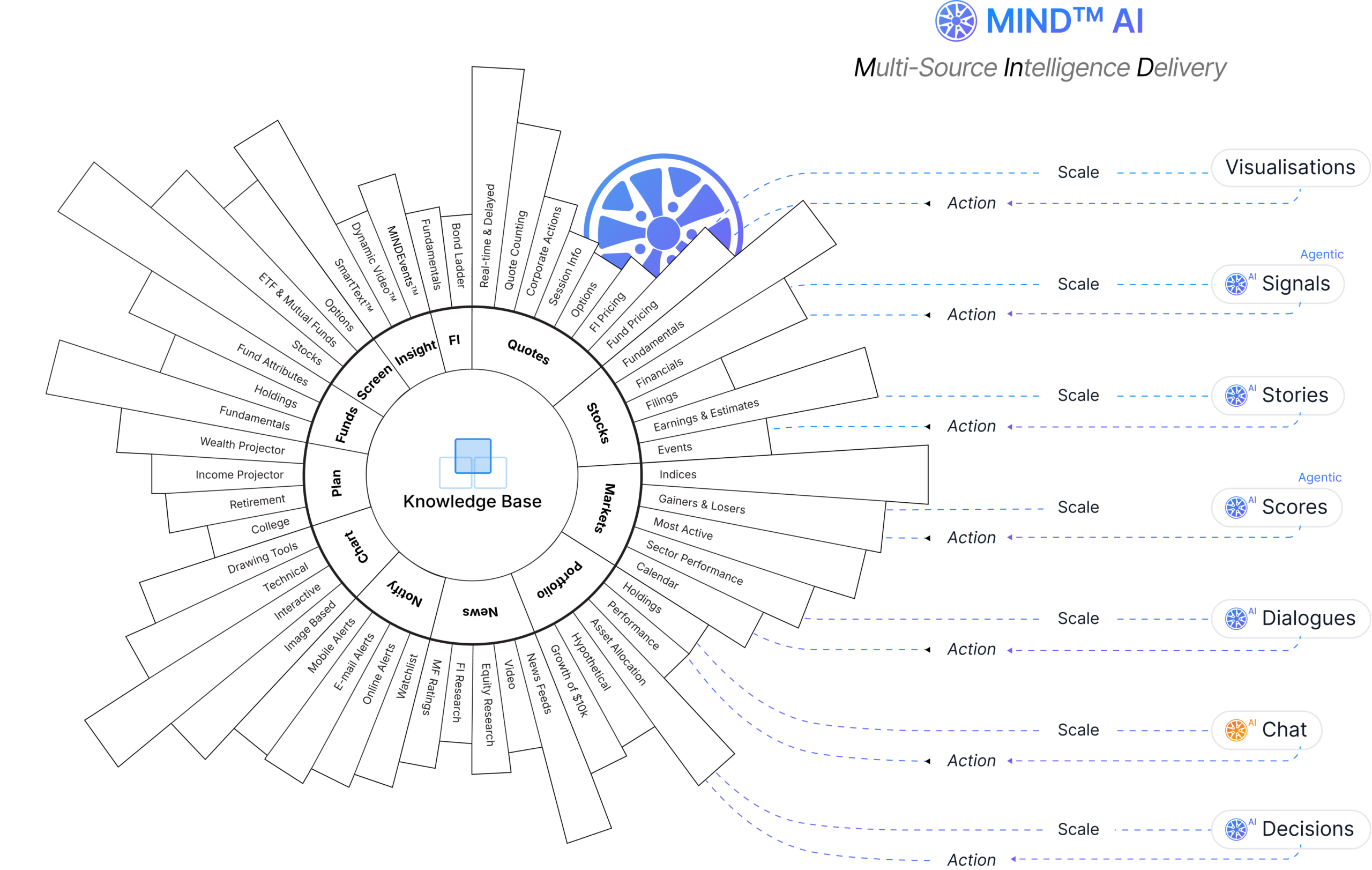 MIND™ (Multi-Source Intelligence Delivery) AI combines deterministic proprietary AI engines with leading LLMs – grounded in the industry’s most comprehensive Knowledge Base of unified market and client data. The deterministic engine and Proof of Dimension (P.O.D.) framework ensure every output is precise, auditable and trustworthy at scale. MIND™ AI does the heavy lifting – making sense of billions of data points at scale and powering intelligent experiences via: Visualisations, Signals, Stories, Scores, Dialogues, Chat and Decisions.
