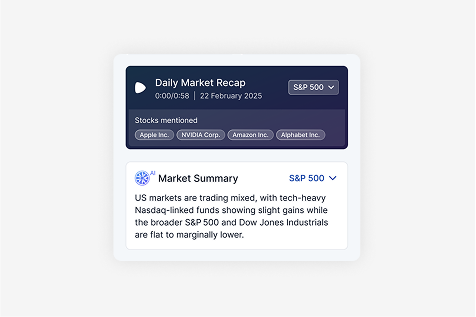 Powered by MIND™ AI, Stock Stories use thousands of trusted data sources and advanced deterministic models to surface the insights that matter most. Every story is accurate, compliant, and tailored to your audience.
