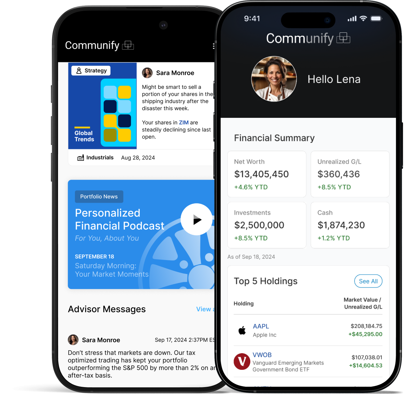 Deliver white-glove digital experiences with rich visualizations and engaging content formats. With Communify’s ever-evolving app library, every client receives the premium treatment typically reserved for your highest-value relationships.
