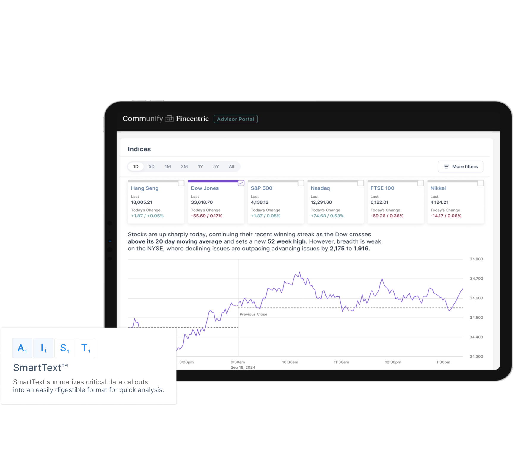 Welcome to the next generation of efficiency and engagement – fusing compliant AI (AI-D) with deep decision theory practices. Client and market data turn into actionable insights, driving informed decision making and boosting confidence, trust and transparency for any investor or investment professional. Beat the complexity. Beat the same-as. And beat the traffic home.