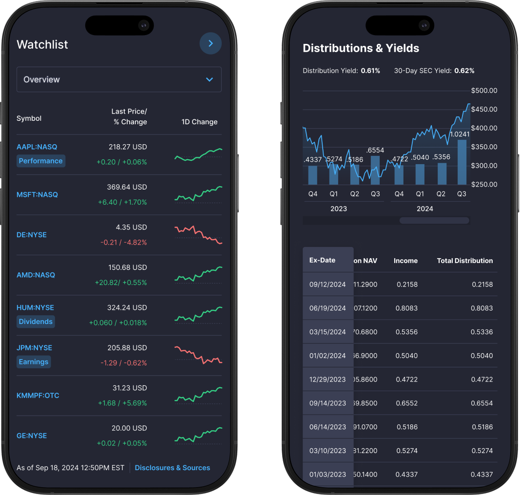 Enhance your market research experience with pre-built, ready to integrate apps and APIs that deliver institutional grade data through beautiful visualizations.