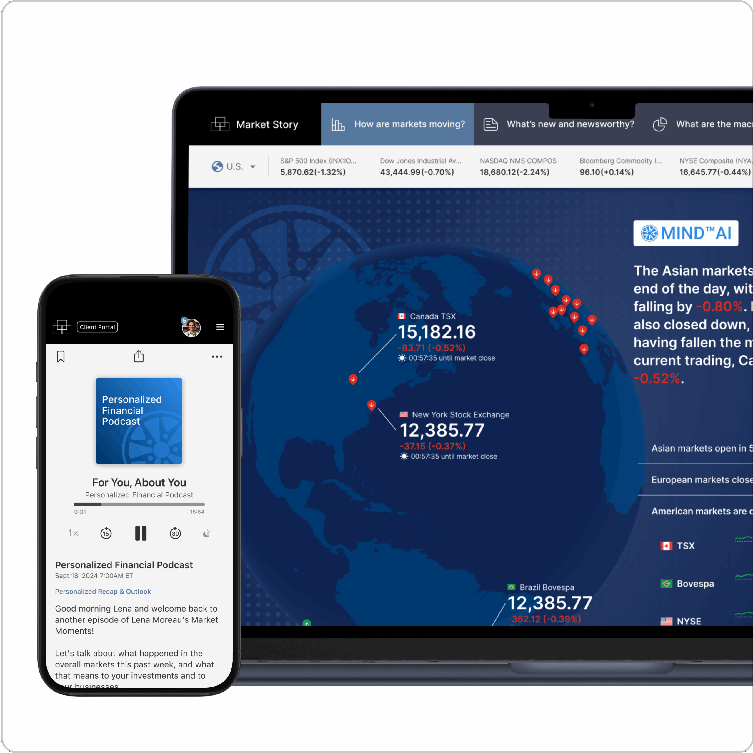 Dynamic videos that are always available and always up-to-date which enable advisers to scale narratives or quickly communicate with large groups of clients.
